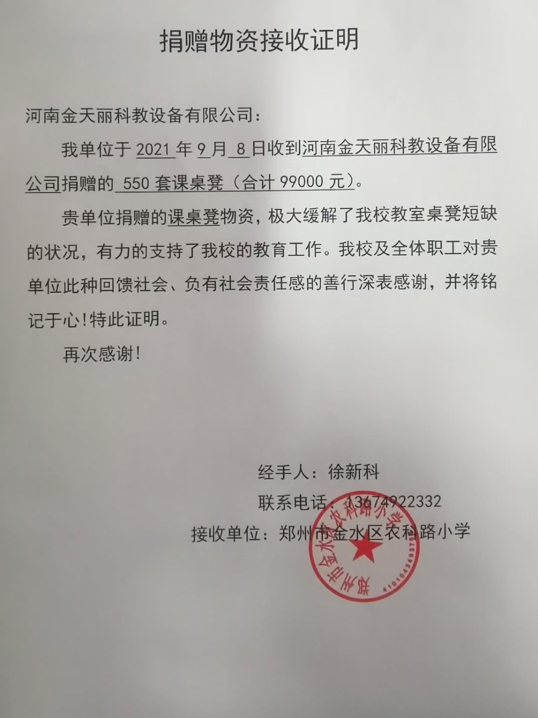金天麗支援鄭州7.20特大暴雨受災(zāi)學(xué)校
